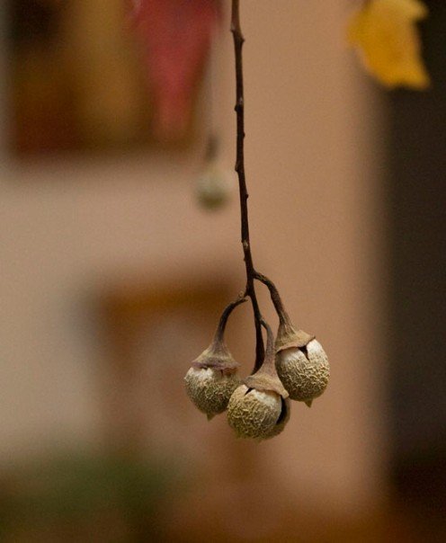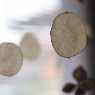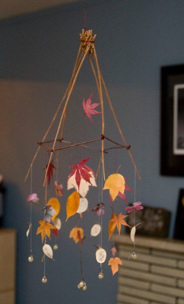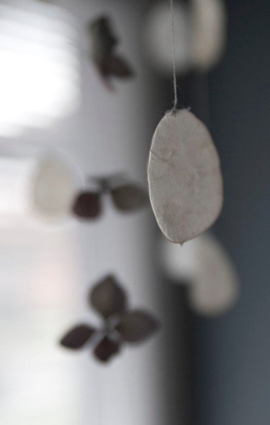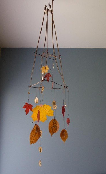 The first two months of life with a new baby have been gracious to me. Lillia is a fairly good baby, feeding and growing well. I felt like making something for her, so I have been gathering leaves and silver dollars and other things inspired by nature to make mobiles. I have now made 3 mobiles – the silver dollar one is calmest and hangs over her cradle. The most colourful is to entertain her over the change table, and the final one is for our living room since we spend a lot of time in there.